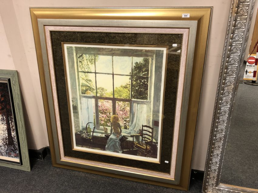 After Ken Howard : Springtime at Oriel, reproduction in colours, numbered 58/175, signed in pencil, 76 cm x 62 cm, framed.