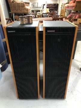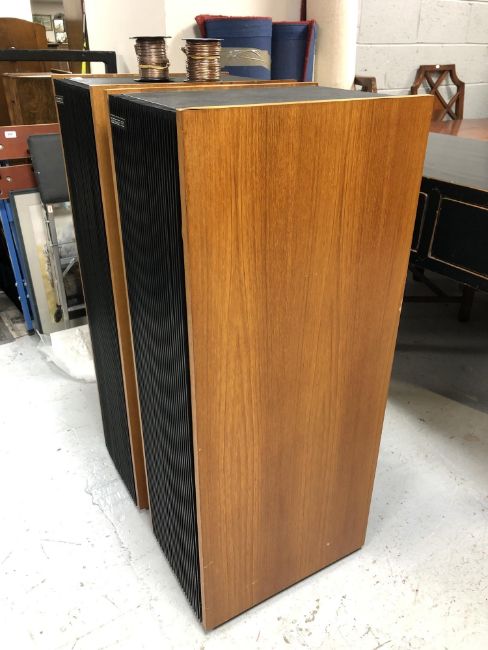 A pair of rare Cambridge Audio R50 series floor-standing teak-cased speakers, with connectors. (2)