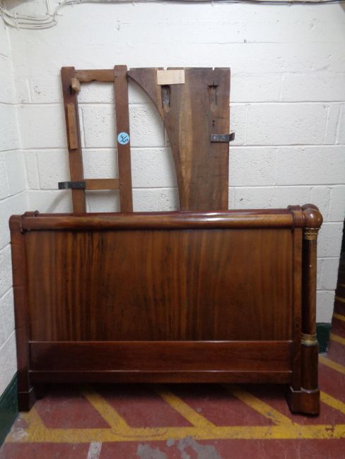A late 19th century mahogany 5' bed frame with column supports