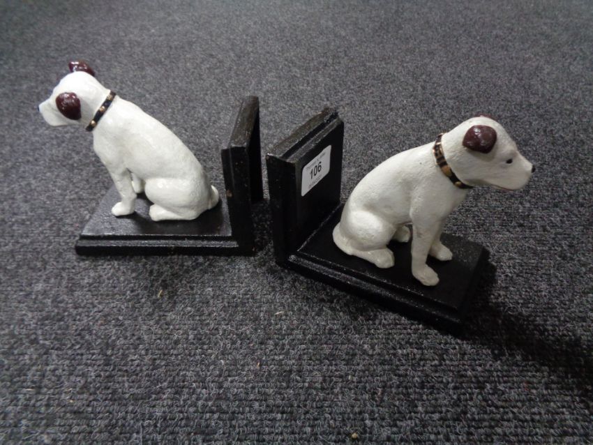 A pair of cast iron Nipper dog bookends