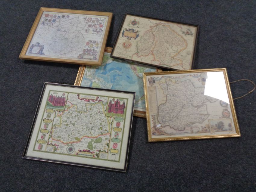 Five framed maps to include; Essex, Pacific Ocean, Lincolnshire etc