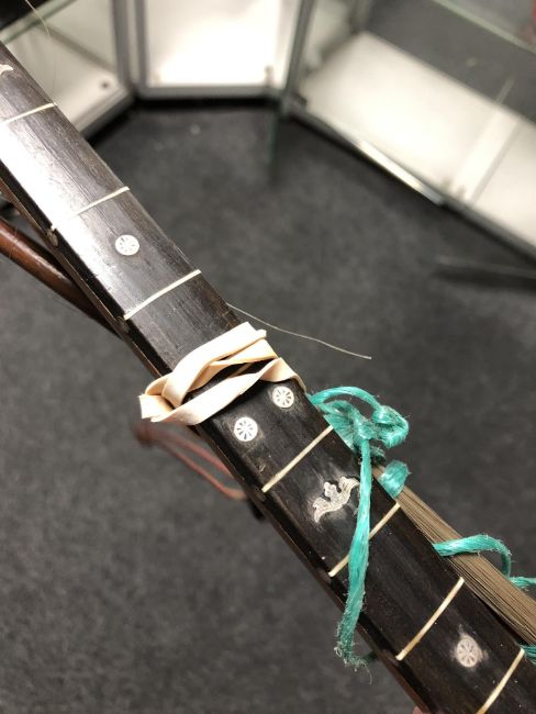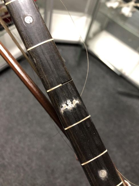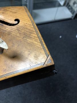 Wood faded. Fret board missing some small pieces of inlay. Small piece of inlay missing from lower corner of body. Crack/gap starting to form between neck and body. See additional images.