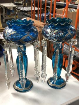 Numerous small chips to clear drop lustres. Typical wear to paint/gilding. Otherwise good condition.