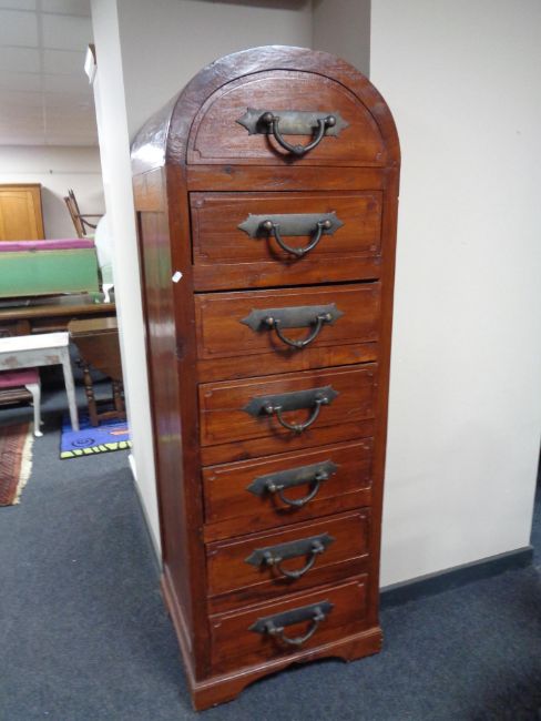 An eastern hardwood dome topped seven drawer chest with heavy metal drop handles
