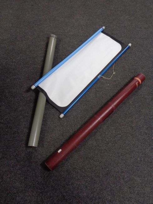 Two vintage projector screens in tubes