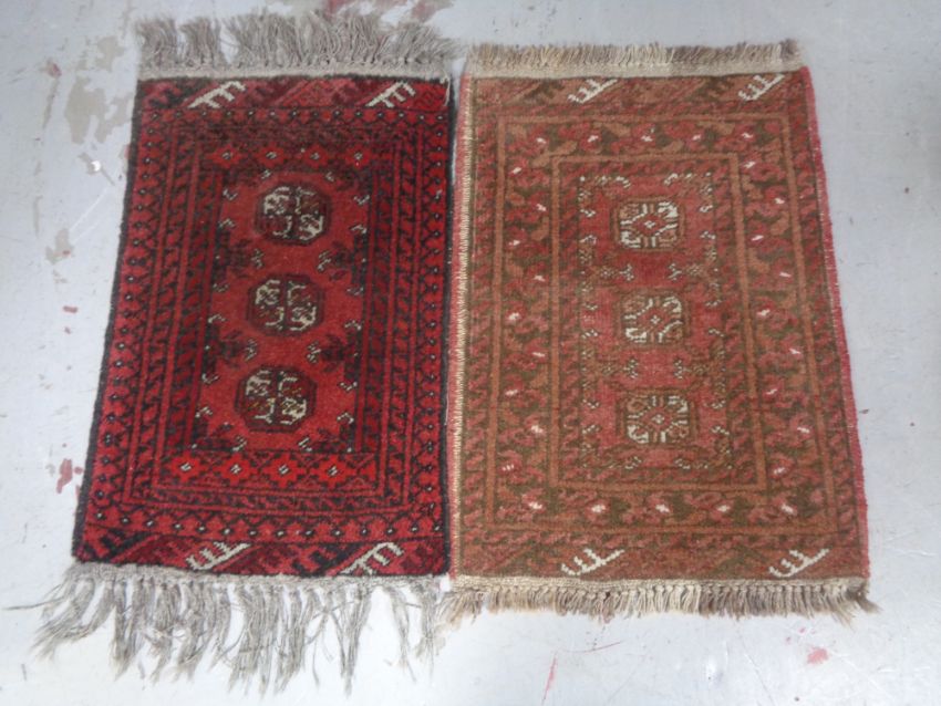 An Afghan rug, 80cm by 52cm, together with another similar, 90cm by 46cm (2)