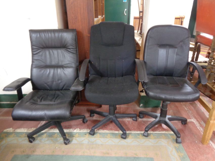 Three swivel office armchairs