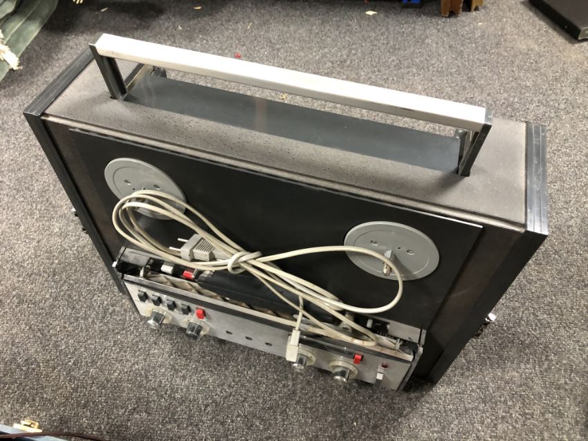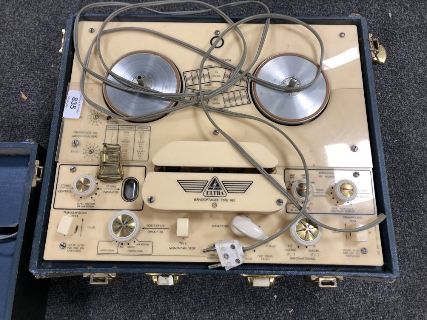 A cased vintage Eltra-Bandoptager Type 950 together with a Revox high fidelity reel to reel (continental wiring)