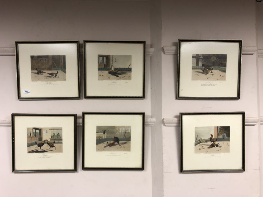 A set of six hand coloured cockfighting engravings, published 1853 by Rudolph Ackerman, Eclipse Sporting Gallery, 191 Regent Street (6)