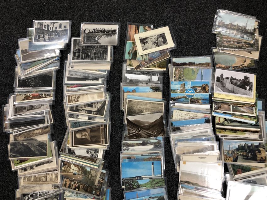A tray of antique and later postcards