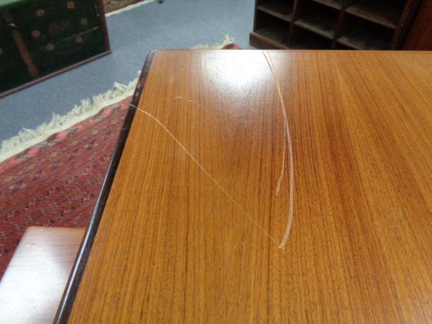 A Danish Mobel 20th century square coffee table (a/f), together with matching refectory coffee table