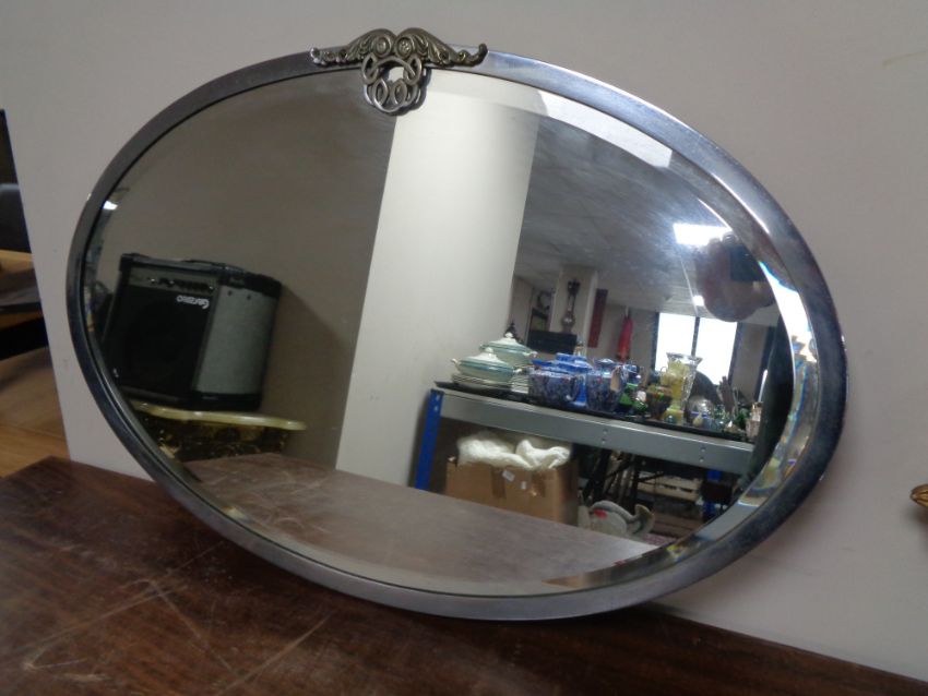 A 1930s oval chrome framed mirror