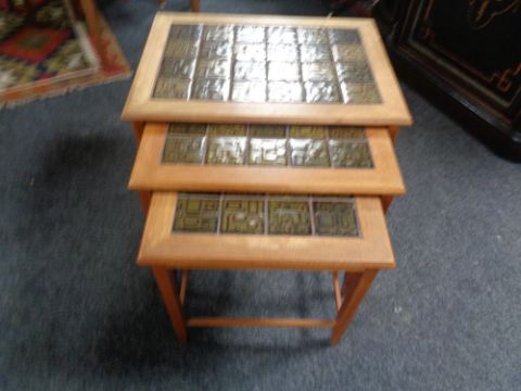 A nest of three teak tiled topped tables