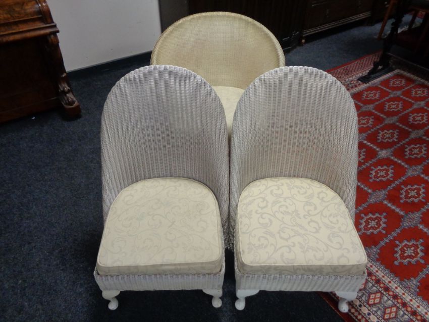 A pair of painted loom bedroom chairs and a loom armchair