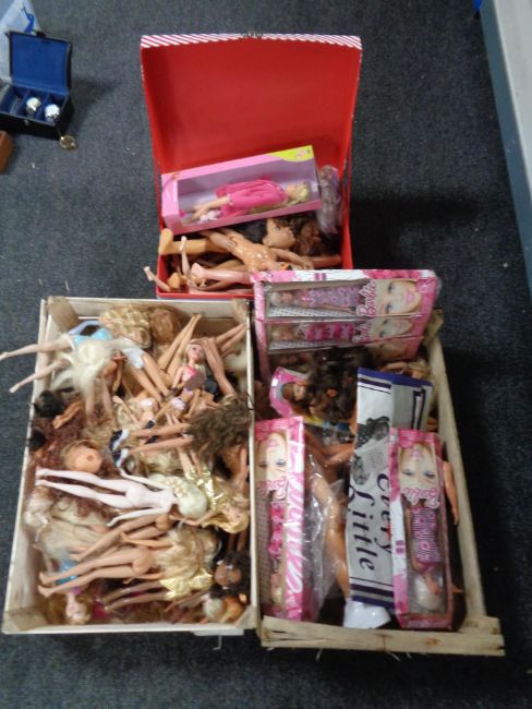 Three boxes of a quantity of assorted dolls including Barbie