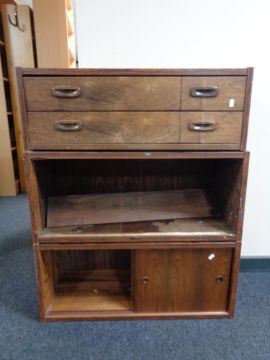 A three piece mid 20th century rosewood Ladderax unit (a/f)
