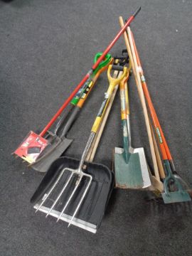 Four bundles of assorted garden tools
