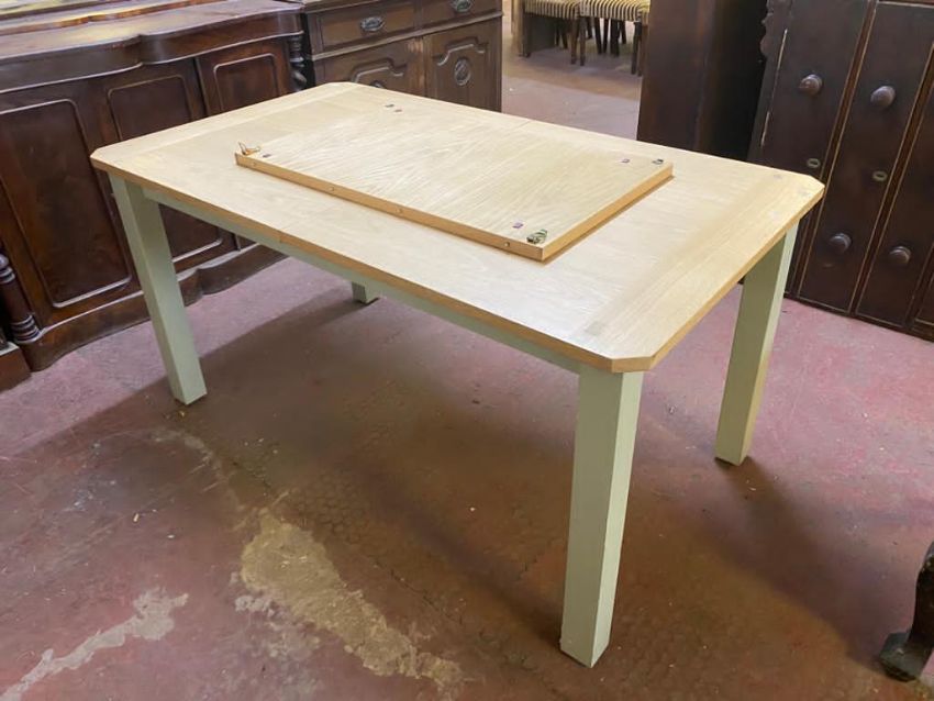 A contemporary extending dining table on painted legs