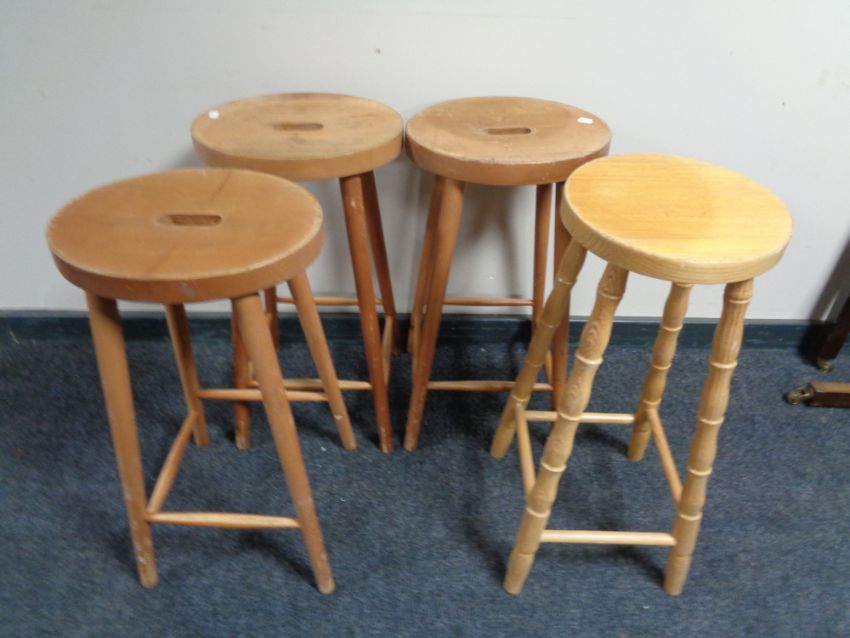 Four pine kitchen stools