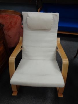 A contemporary beech framed rocking chair