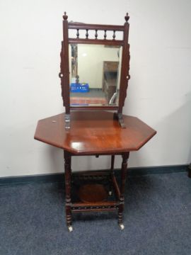 An Edwardian mahogany mirrored fire screen and occasional table