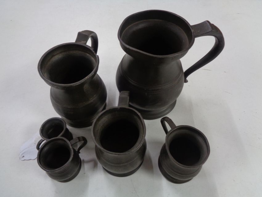 Six antique pewter tankards/measures