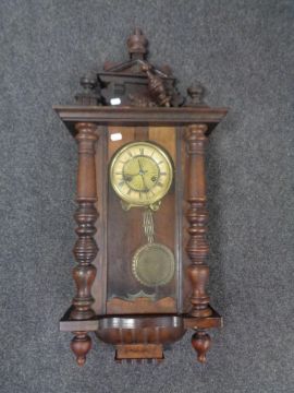 An early 20th century mahogany cased eight day wall clock with pendulum