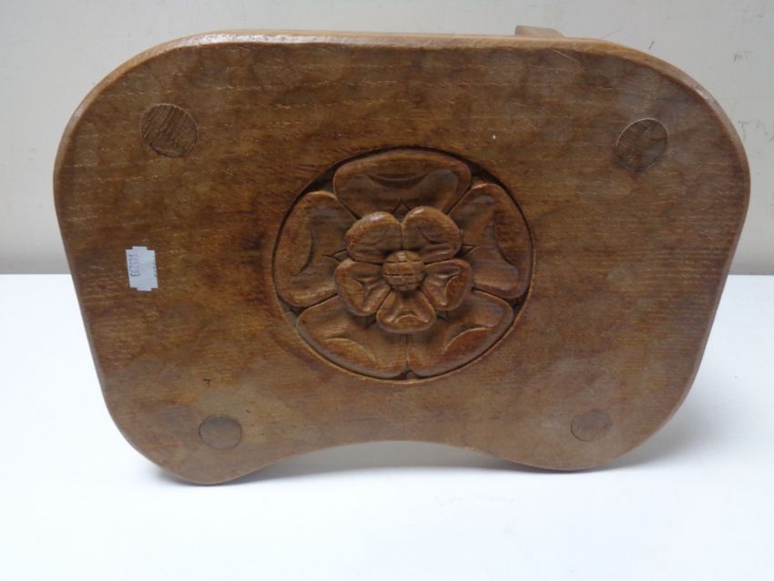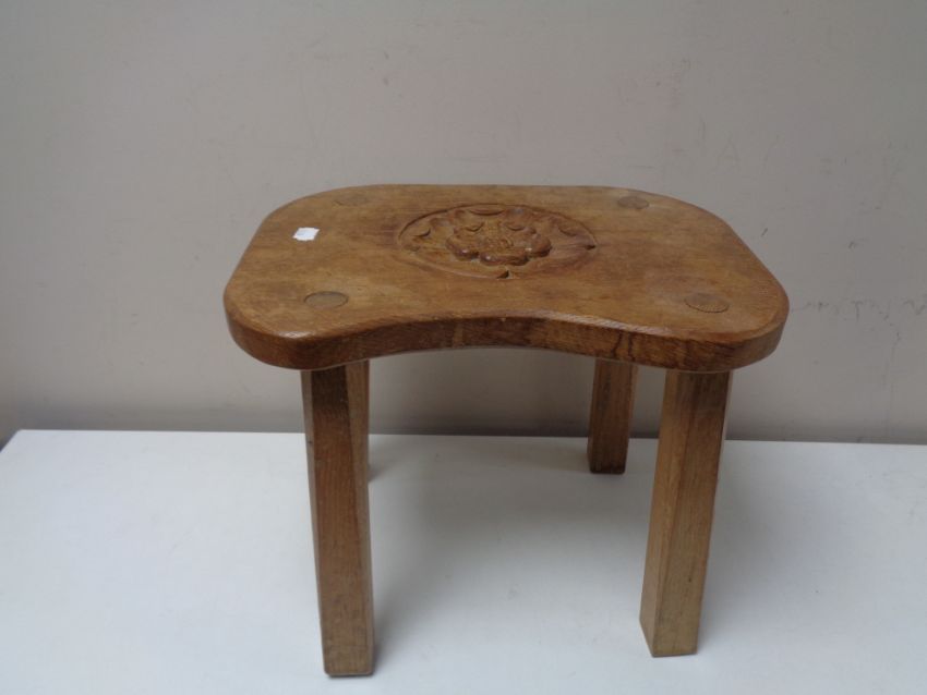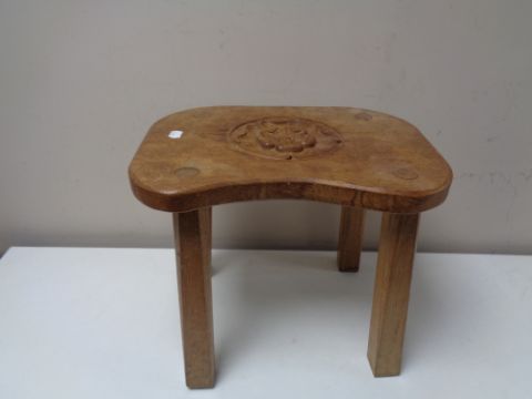 An oak four legged stool made by Peter R. Pearson, The Shambles, York
