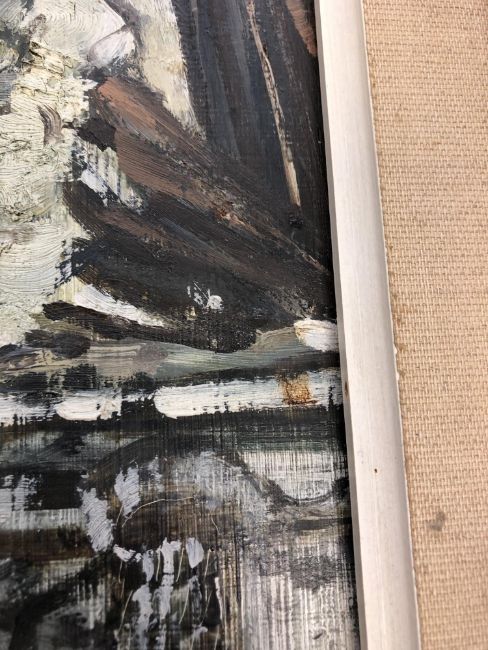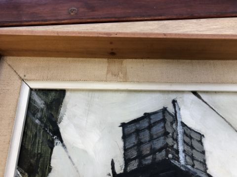 Cecil Maguire, RHA, RUA (b.1930), Mill Buildings, Galway, oil on board, signed lower right and also verso, 59cm by 29cm. *Subject to Artist's Resale Rights/Droite de Suite. CONDITION REPORT: The picture is in good condition without any damages or restorations. However, we do note that there are splashes of some brownish liquid (perhaps coffee) which have congealed onto the surface of the paint in a few areas. See close-up images. Provenence - A private, deceased estate in the North East.