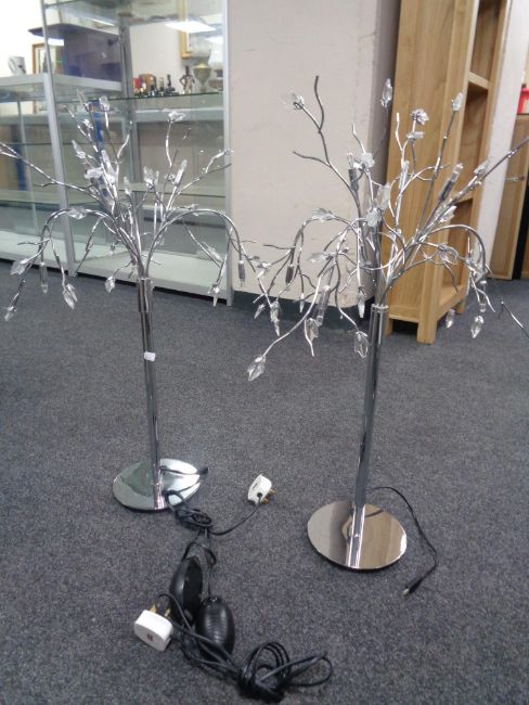 A pair of contemporary chrome table lamps