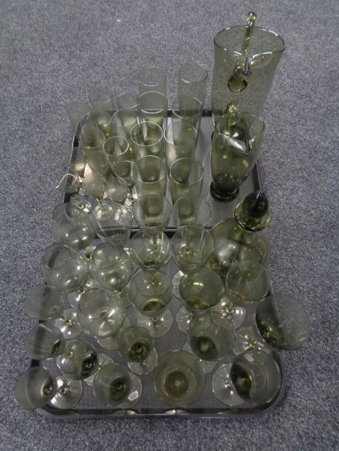 Two trays of Czechoslovakian glass, decanter, jugs etc