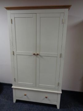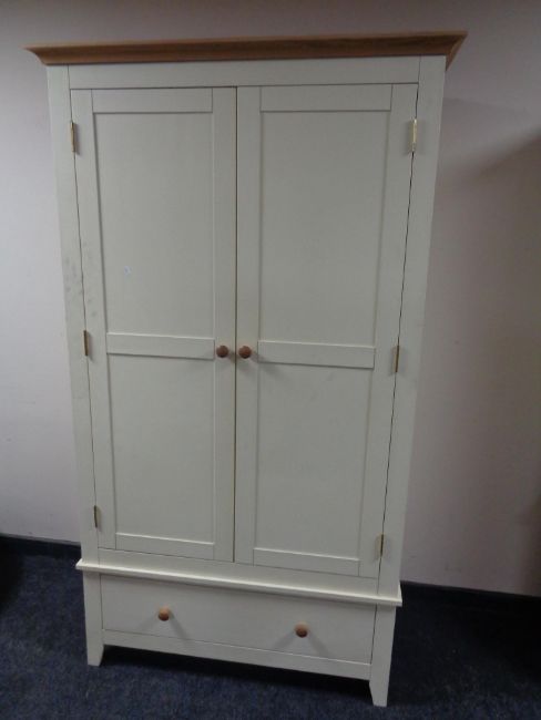 A contemporary painted pine double door wardrobe