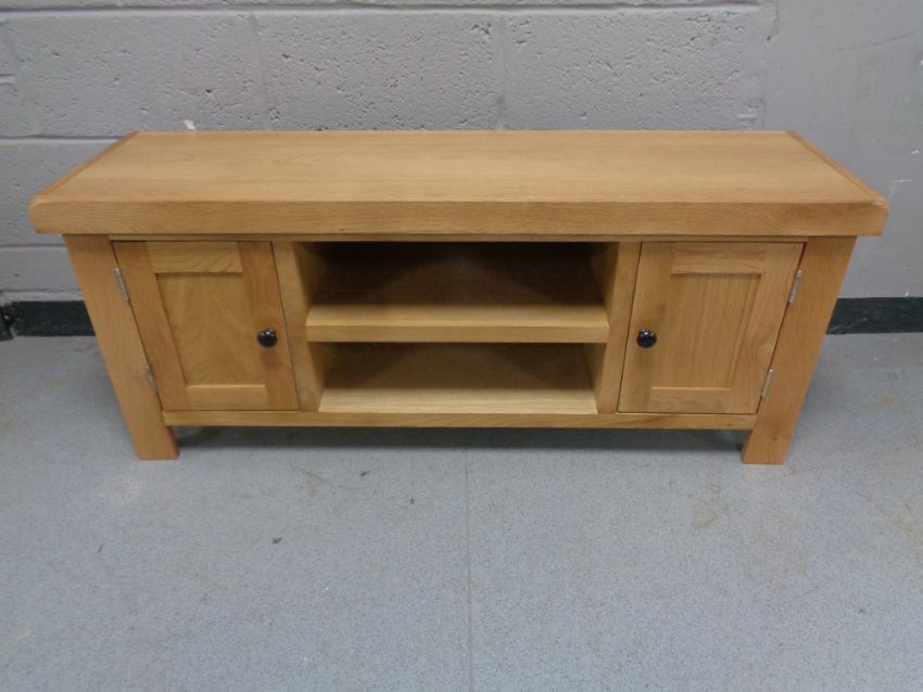 A contemporary entertainment stand fitted cupboards and shelves