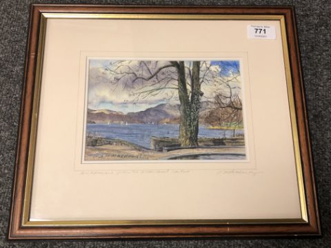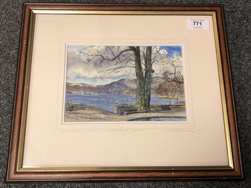 Jill W. Aldersley : Windermere from The Steamboat Centre, watercolour, signed, 14 cm x 20 cm, framed.