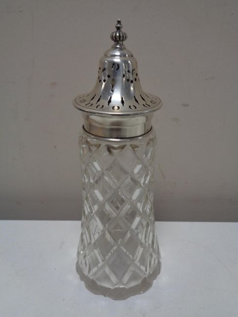 A silver topped sugar castor