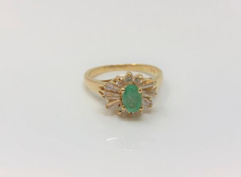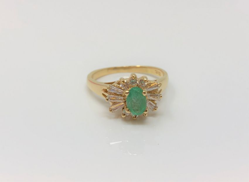 An 18ct gold emerald dress ring, size K