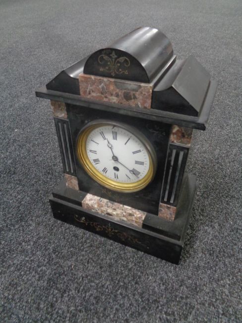 An Edwardian black slate mantel clock