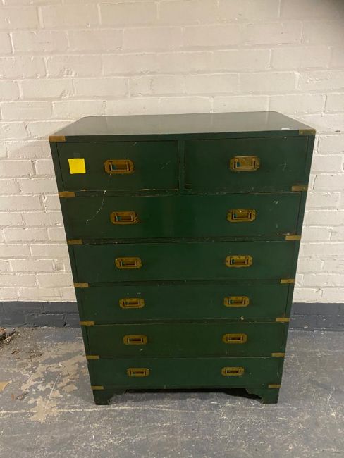 A painted seven drawer ship's style chest with brass drop handles