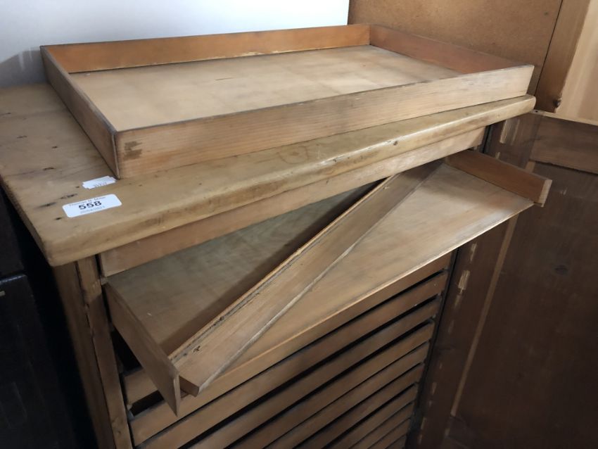 An antique pine printer's cabinet fitted trays