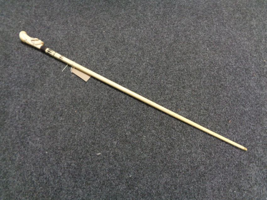An antique carved ivory walking stick with bird to pommel, length 82 cm.
