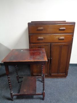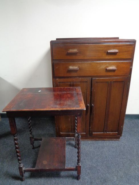 A 1930s linen chest fitted with two drawers, with a barley twist occasional table