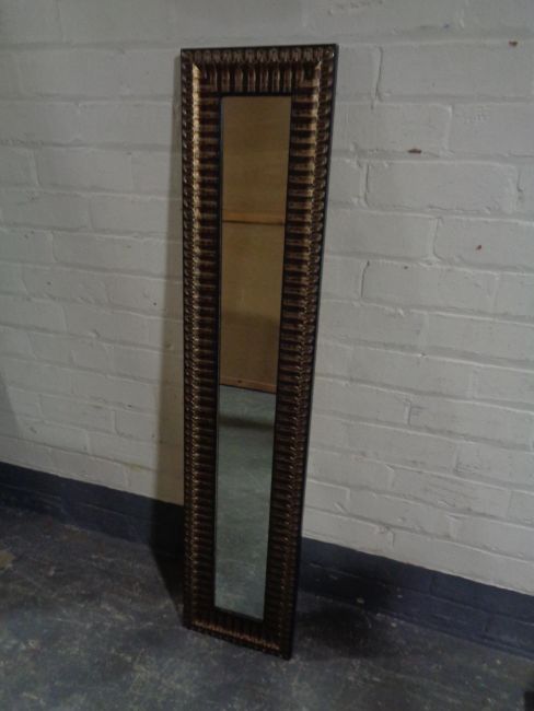 A slim, silvered hall mirror