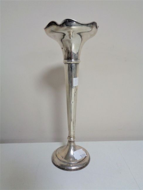 A Birmingham silver fluted vase on weighted base, height 20 cm.