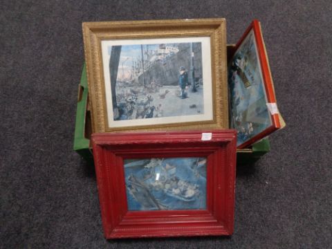 A box containing three mid twentieth century humorous prints.