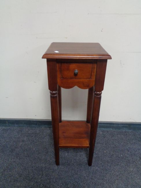 An Indonesian hardwood plant stand fitted to drawer with under shelf.