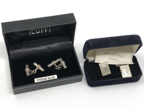 A pair of silver Royal Mail cufflinks together with a further pair of sterling silver cufflinks.
