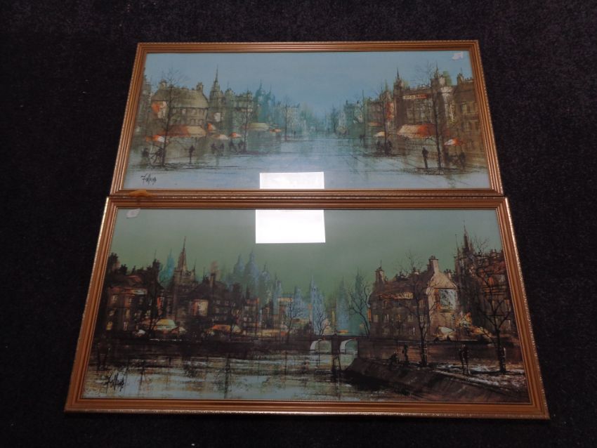 Two 20th century gilt framed prints depicting street scenes by Folland.