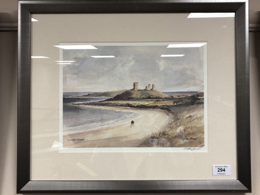 After Tom MacDonald, Dunstanburgh, reproduction in colours, signed in pencil to margin, 31cm by 23cm.