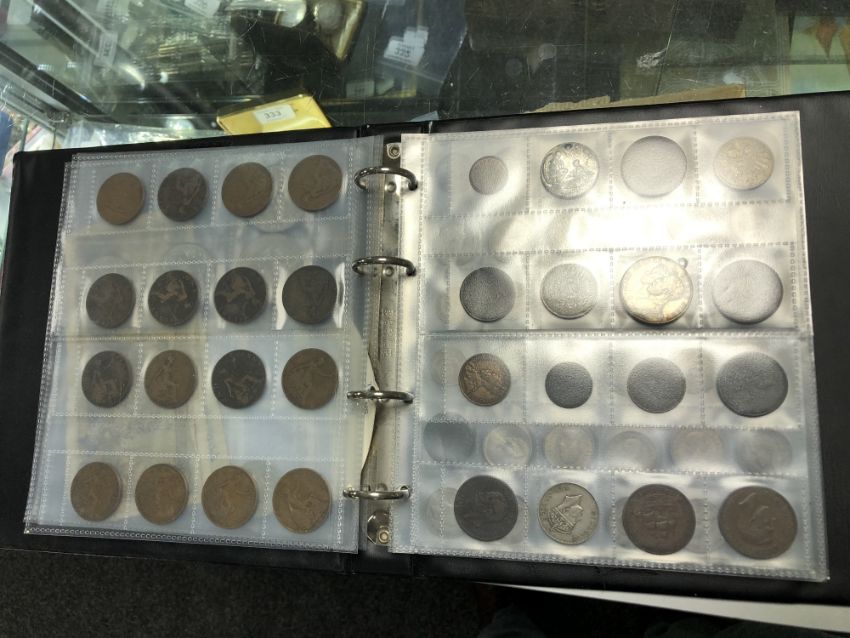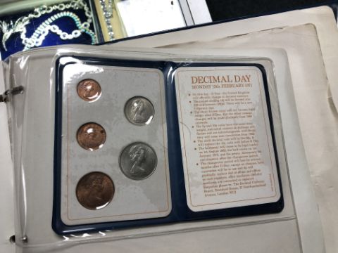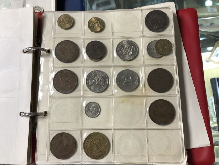 Three coin albums containing pre decimal coins, bank notes, foreign coinage etc.
