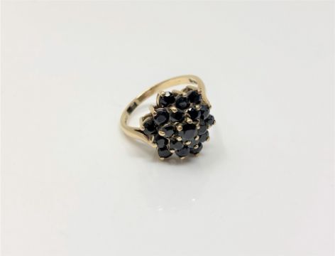 A 9ct gold sapphire cluster ring, size L, 3.4g.